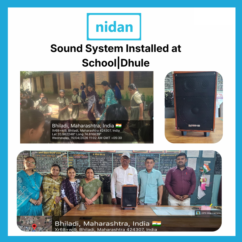 Under the Integrated Rural Development Project in Dhule district, Maharashtra, implemented by Nidan with support from the HG Foundation, a sound system was installed at the Zilla Parishad School in Biladi village.