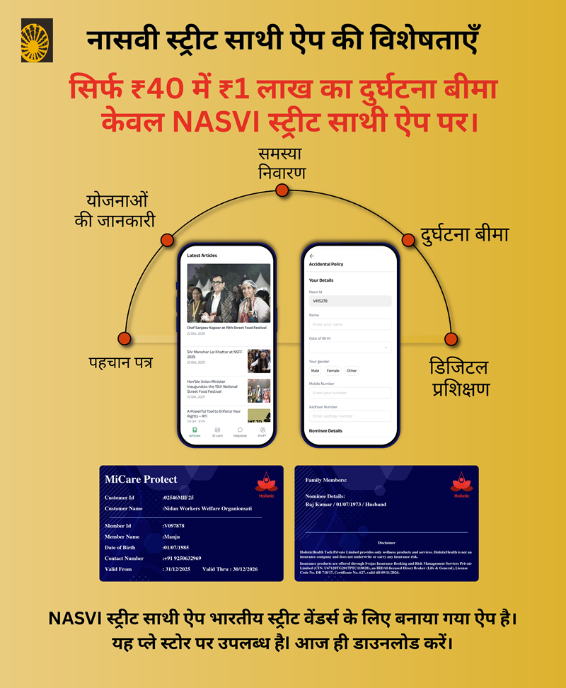 NASVI has launched the Street Sathi mobile application, exclusively for street vendors. Through this app, vendors can become registered NASVI members by paying a nominal annual membership fee of ₹50.